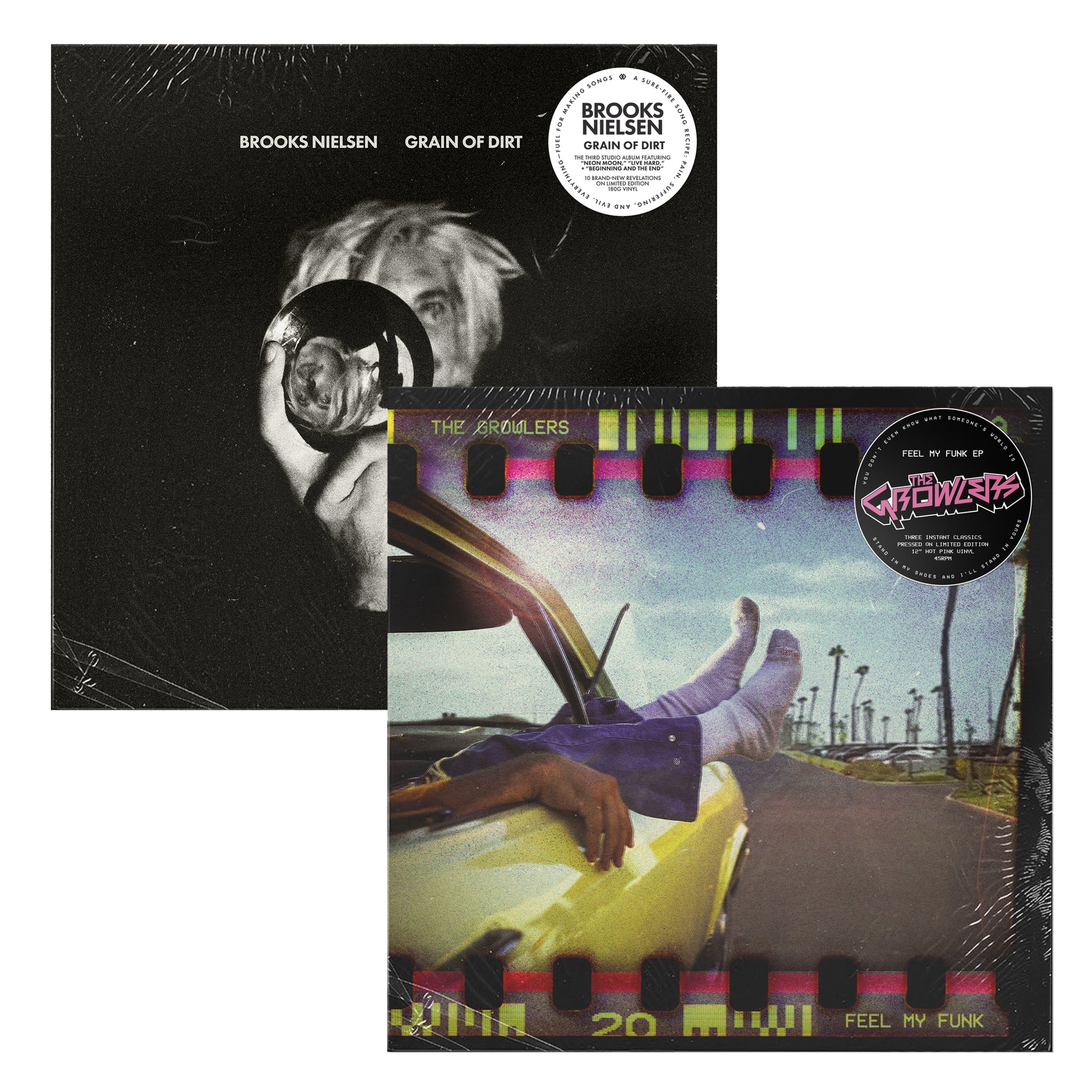 Get two essential new releases together for one low price. Feel My Funk marks The Growlers’ first new music in six years — three instant classics on hot pink vinyl at 45RPM. Brooks Nielsen’s Grain of Dirt is his third studio solo album, ten bold new tracks including “Live Hard,” “Beginning and the End,” and “Neon Moon,” pressed on heavyweight 180-gram vinyl.